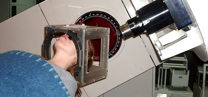 Con el equipo en condiciones de tratamiento se fija el paciente, mediante el marco a la camilla del Acelerador.